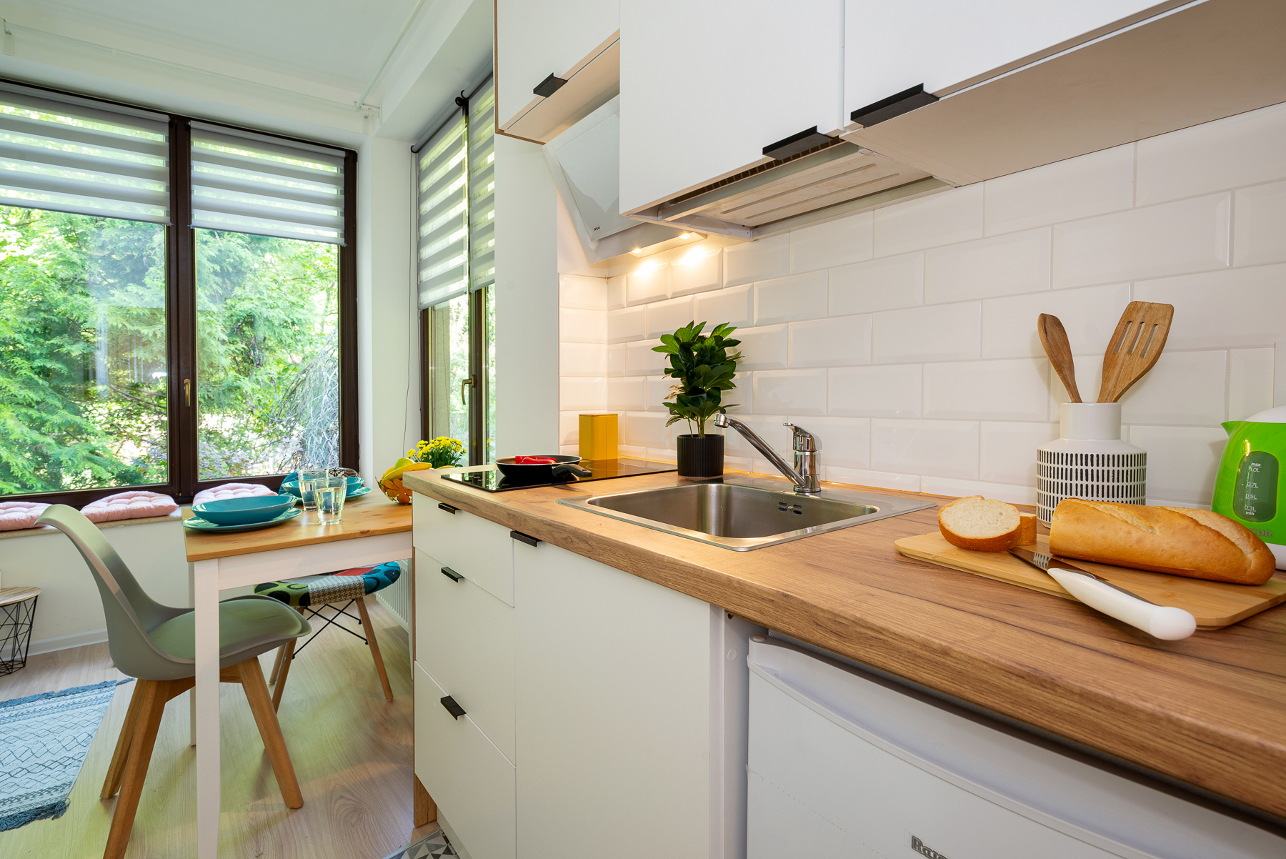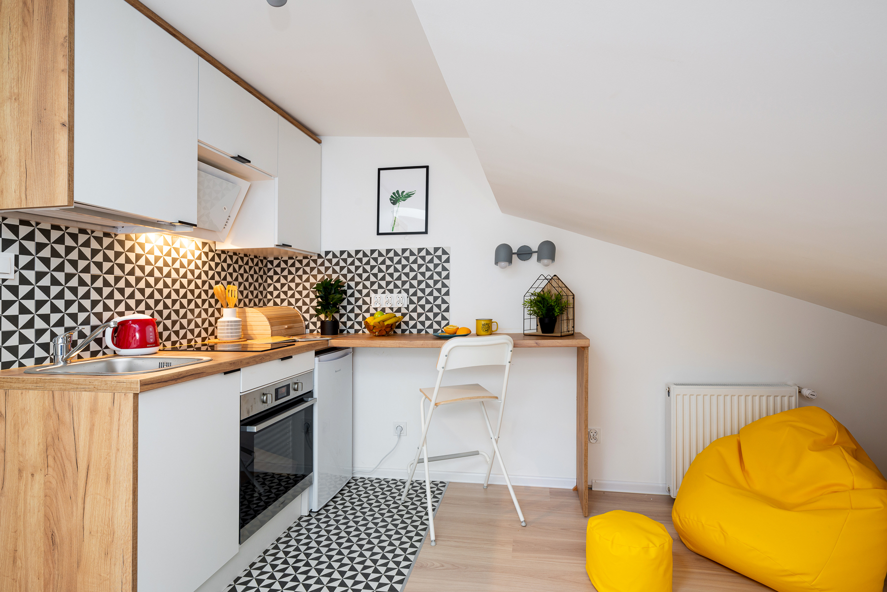 Budynek podzielony na 16 pokoi premium z własnymi aneksami kuchennymi oraz łazienkami.